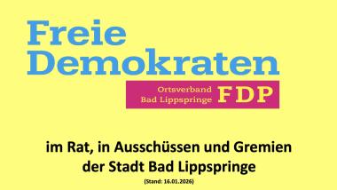 Erfahren Sie auf diesen Seiten mehr über die Arbeit der FDP in Bad Lippspringe. Die Fraktion und der Ortsverein freuen sich über interessierte Besucher, deren gezielte Fragen und engagierte Beiträge.